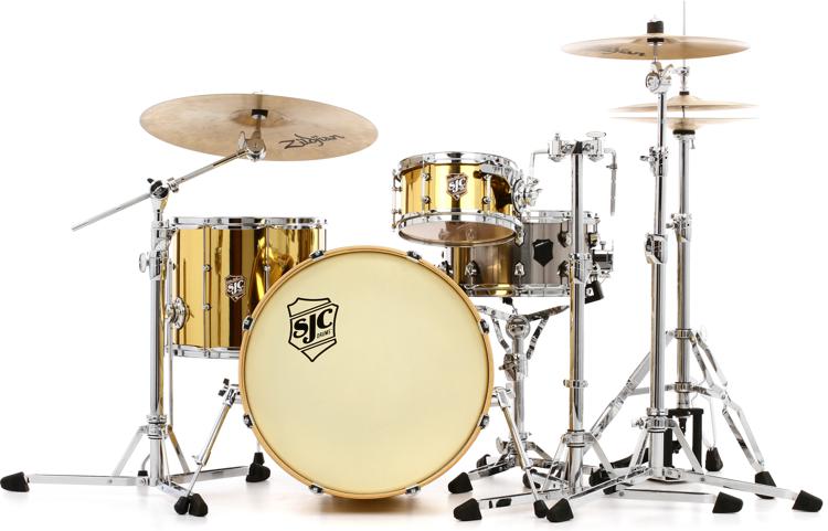 Sjc Custom Drums Busker Deville 3 Piece Shell Pack Mirror Brass Wrap Sweetwater